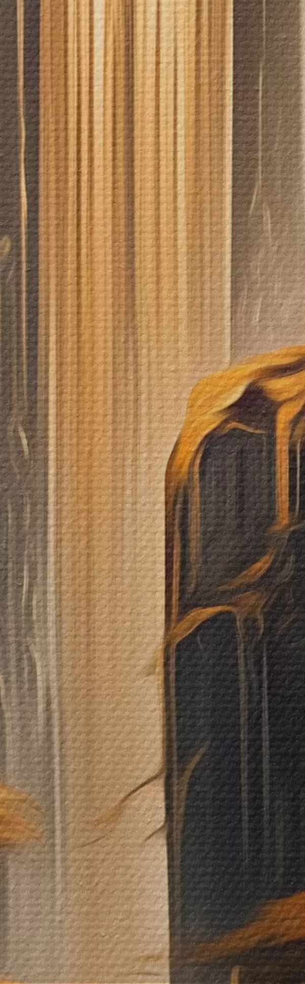 Pictură pe pânză Peisaj cu cascadă și munți în lumină aurie Nr m00928