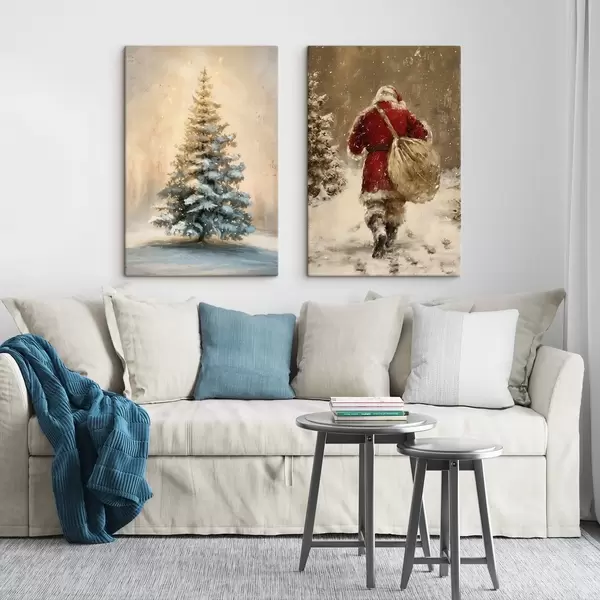 Pictură pe pânză Moș Crăciun și bradul de Crăciun Nr m00956