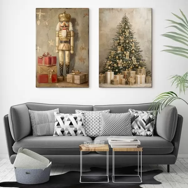 Pictură pe pânză Spărgătorul de nuci și bradul de Crăciun cu cadouri Nr m00957