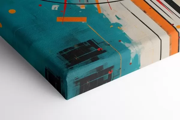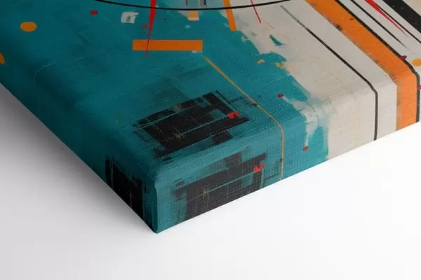 Pictură pe pânză Abstract radial cu explozii de culoare verde-albăstrui și portocaliu Nr m00973