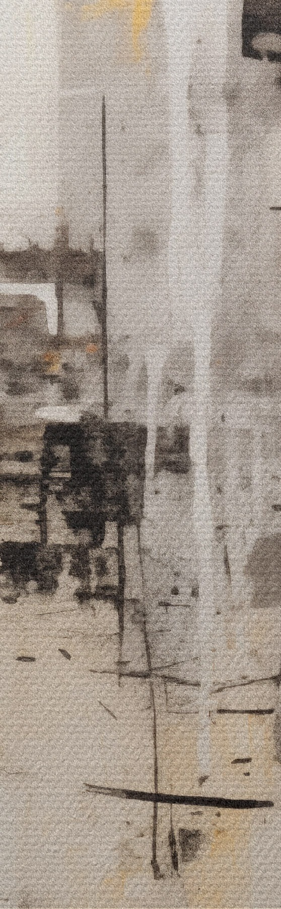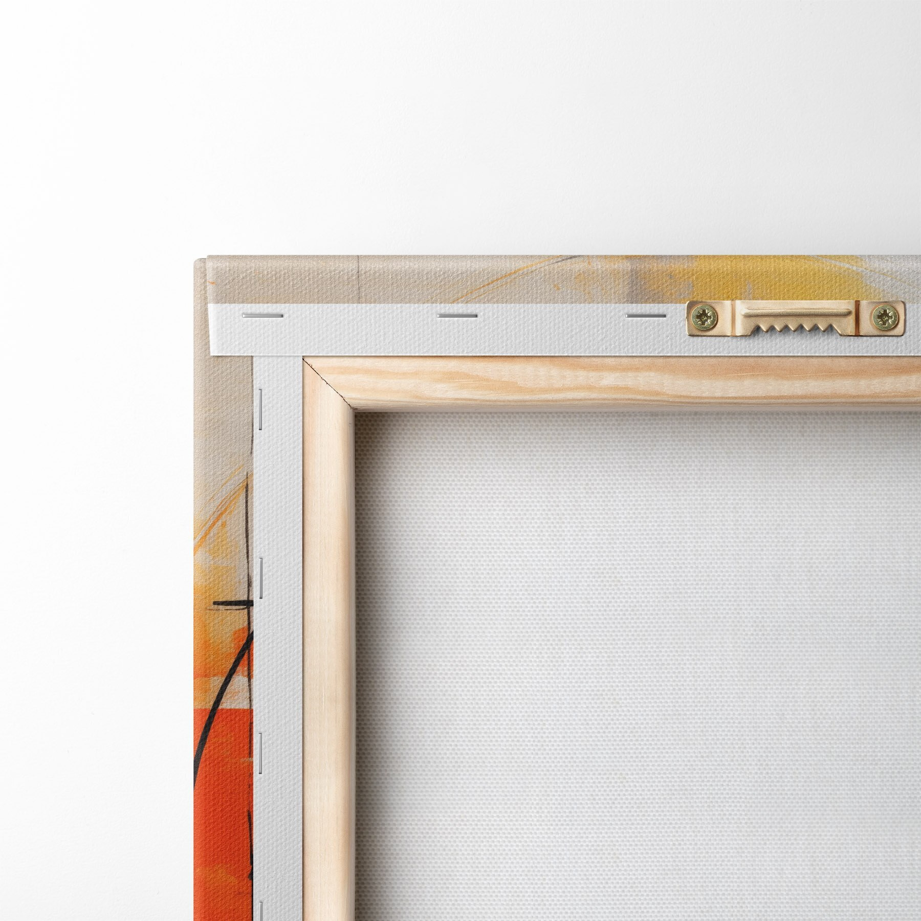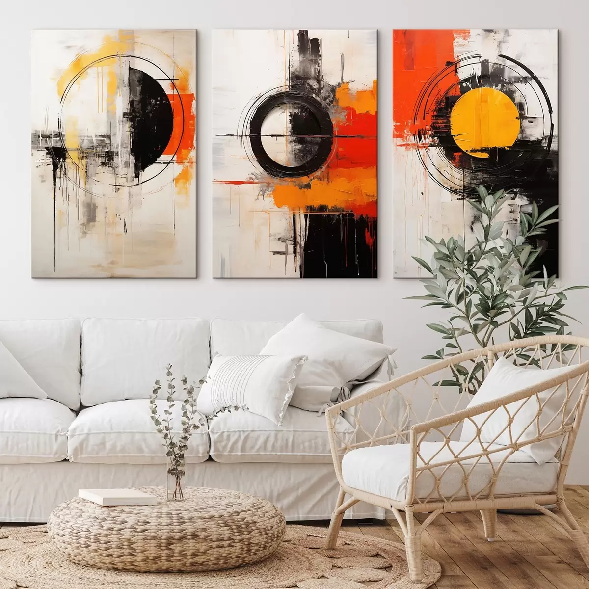 Pictură pe pânză Cercuri texturate și linii groase în negru, ocru, portocaliu Nr m00974