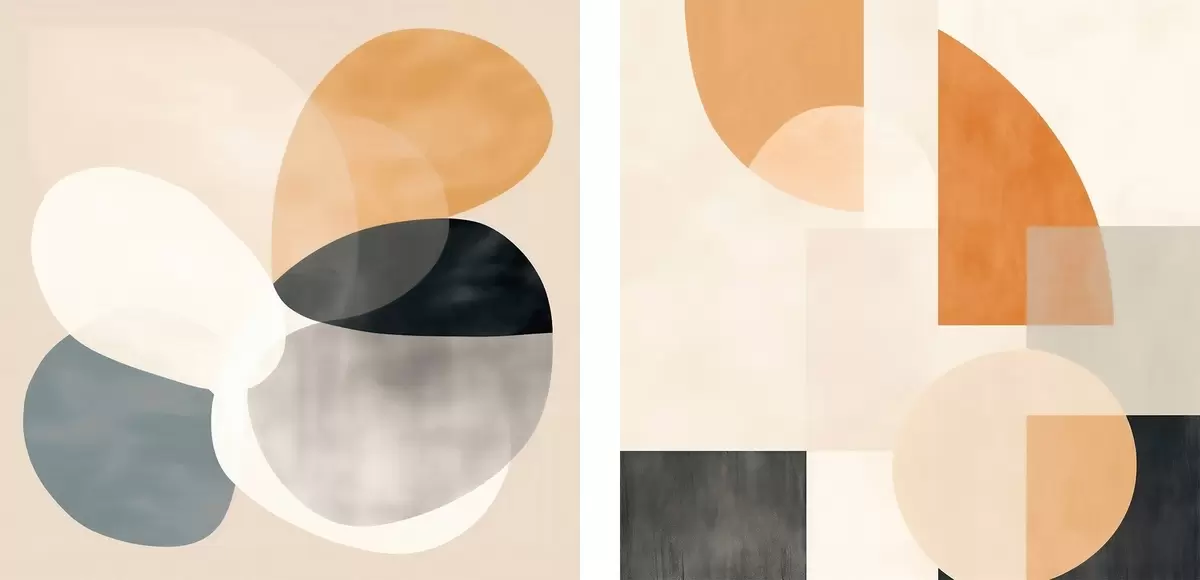 Pictură pe pânză Intersecții rotunjite ale formelor în minimalismul acuarelei Nr m00993