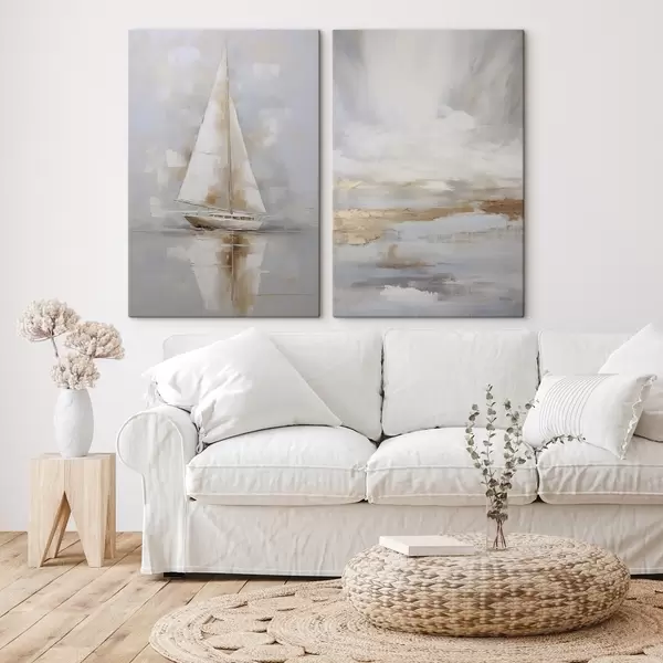 Pictură pe pânză Barcă cu pânze și compoziție abstractă imitație de pictură Nr m00999