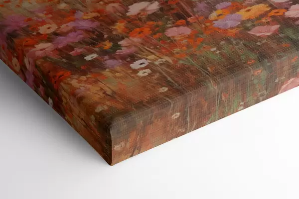 Pictură pe pânză Peisaj, un câmp cu flori colorate și munți în fundal, culori delicate și pastelate Nr m01003
