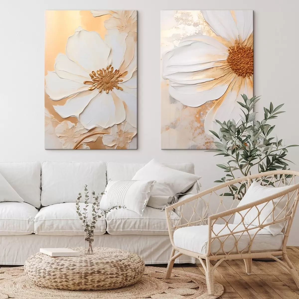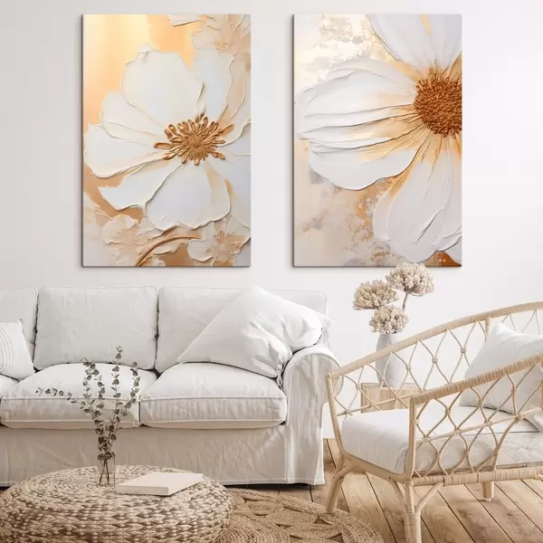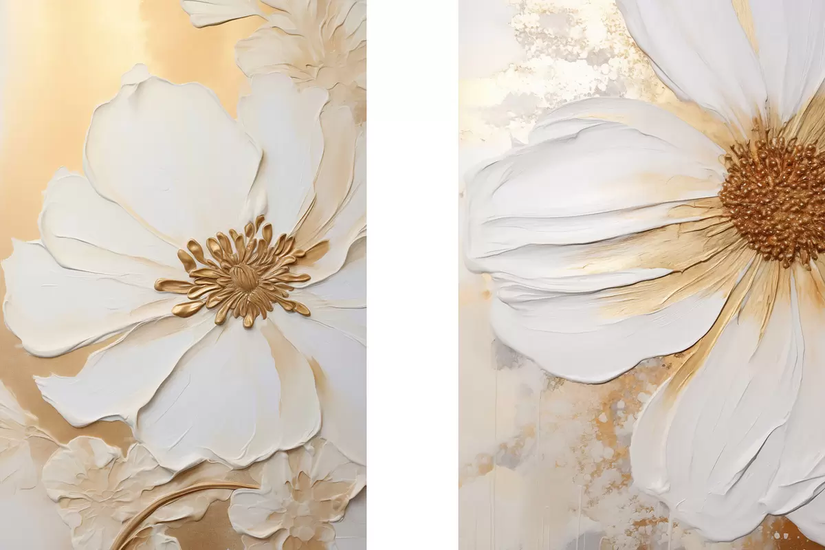 Pictură pe pânză O floare albă cu petale delicate, fundal abstract texturat, elegant, artă decorativă Nr m01006