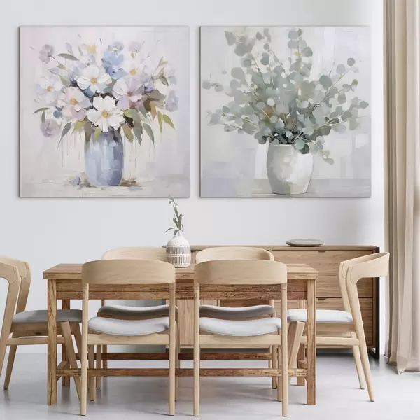 Pictură pe pânză Flori și pictură imitație eucalipt Nr m01017