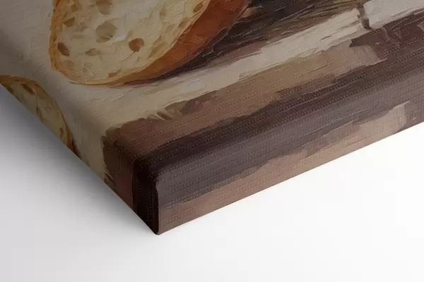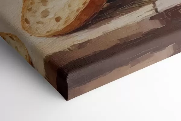 Pictură pe pânză Ramuri de măslin într-o vază, pâine și o sticlă de ulei, pictură imitație Nr m01035