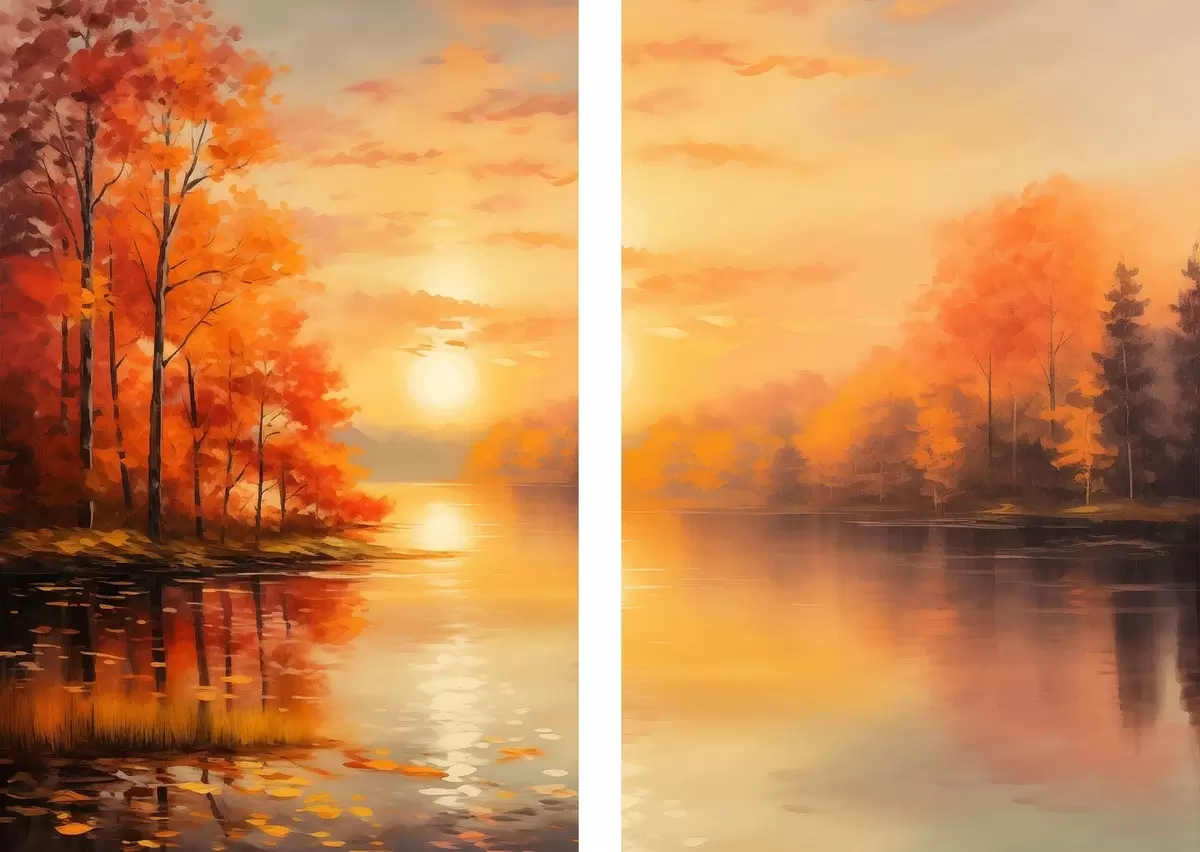 Pictură pe pânză Pădurea de toamnă pe fundalul apusului de soare Nr m01051