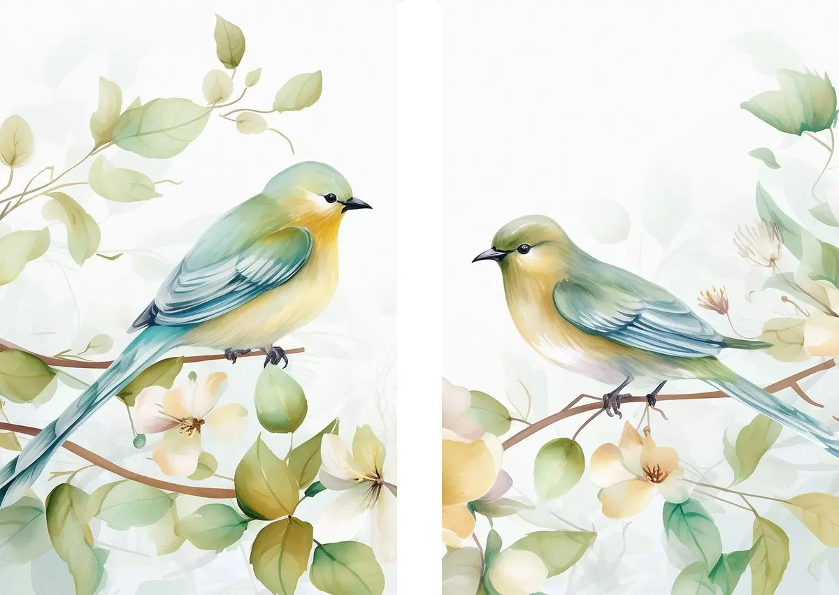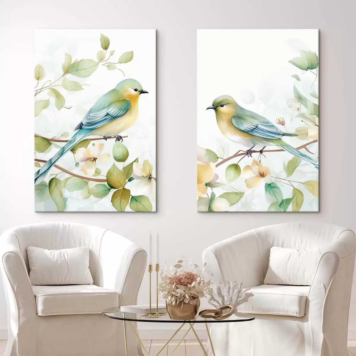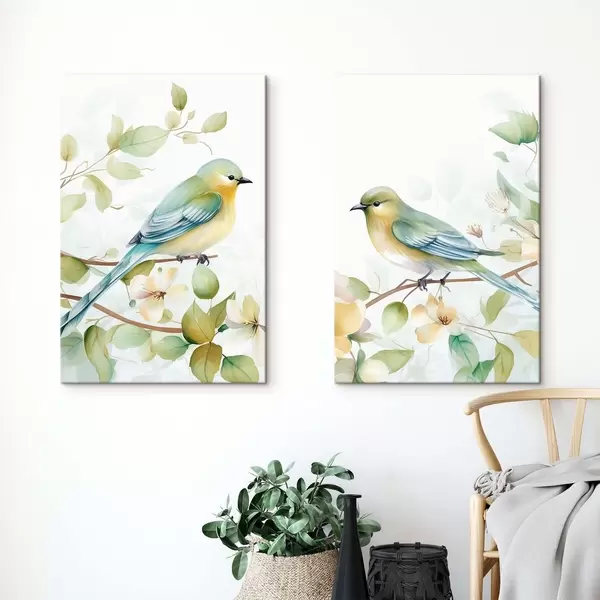Pictură pe pânză Două pițigoi pe ramuri de iasomie Nr m01069