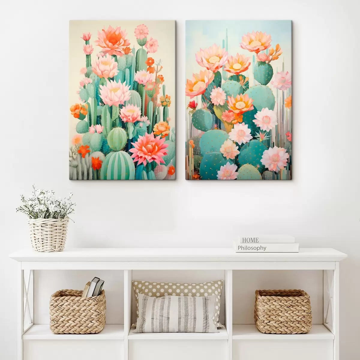 Pictură pe pânză Cactuși cu flori mari, o paletă de culori pastelate și o senzație de calm Nr m01086