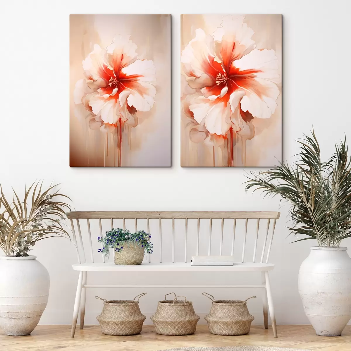 Pictură pe pânză Petale de coral alb pe un fundal abstract, compoziție calmă Nr m01089