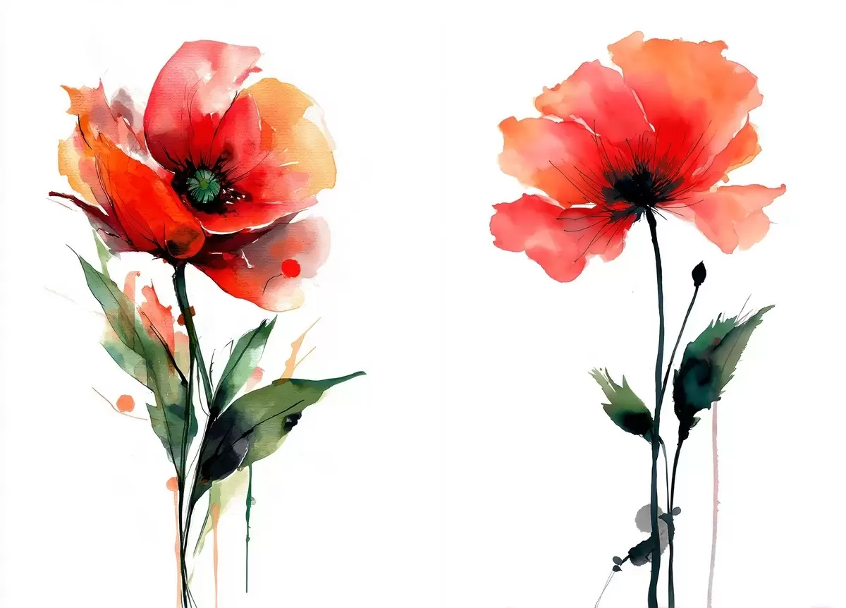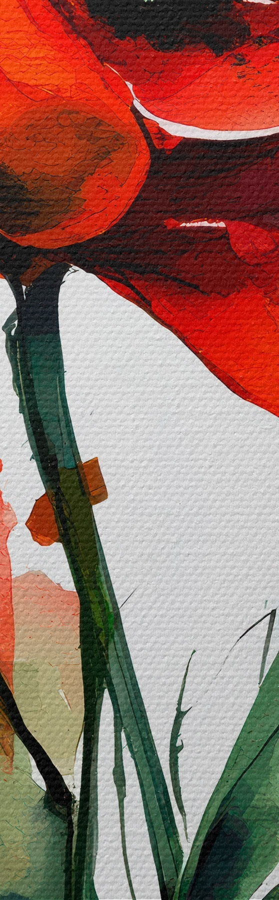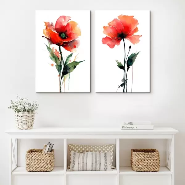 Pictură pe pânză Compoziție cu maci roșii pe fond alb în stil acuarelă Nr m01100
