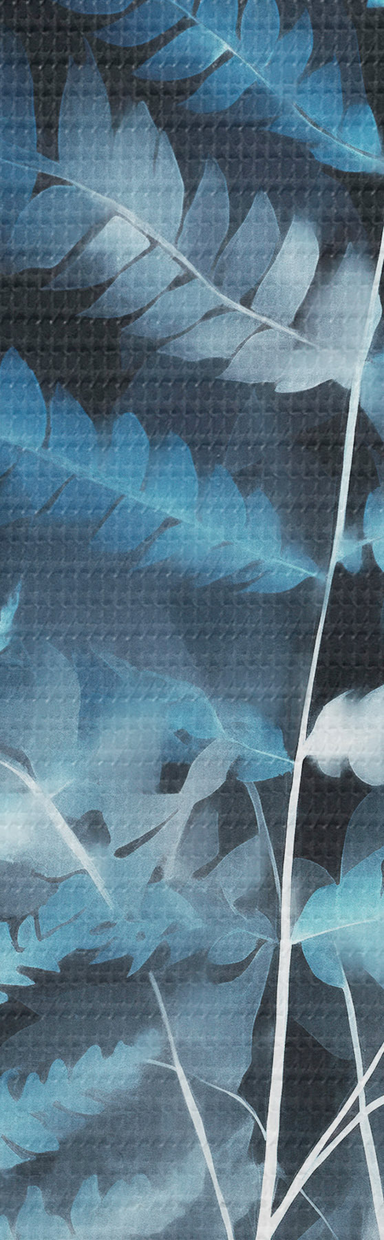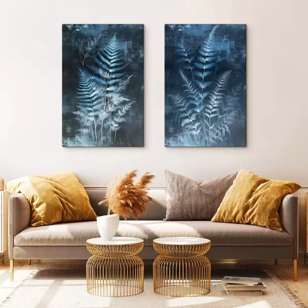 Pictură pe pânză Ferigi și plante albastre pe un fundal întunecat, texturat, cu accent pe detaliile complexe, efect de raze X Nr m01121
