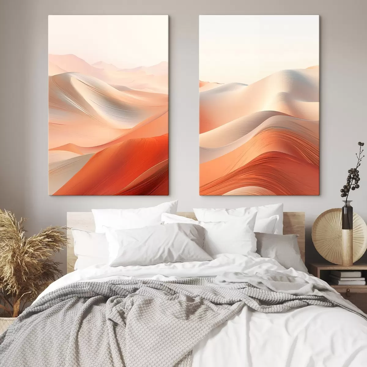 Pictură pe pânză Peisaj abstract de deșert cu dune de nisip în mișcare, în tonuri calde de portocaliu și alb Nr m01123