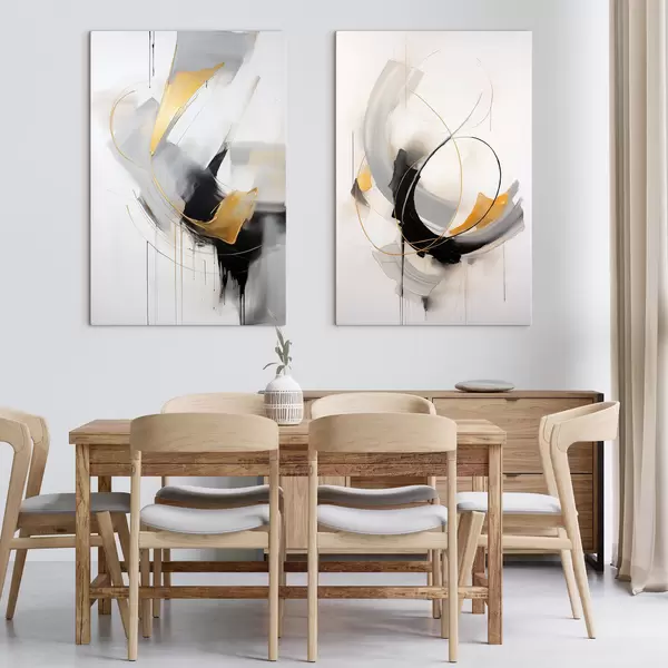 Pictură pe pânză Pictură abstractă cu imitații de pensule galbene, negre și albe, linii dinamice Nr m01125