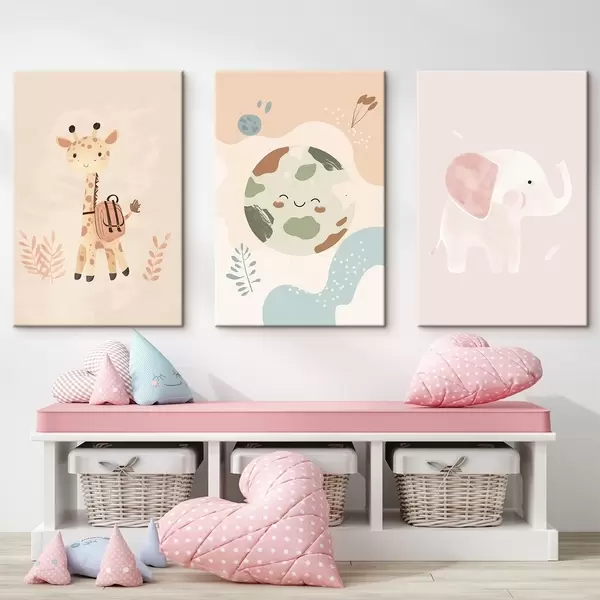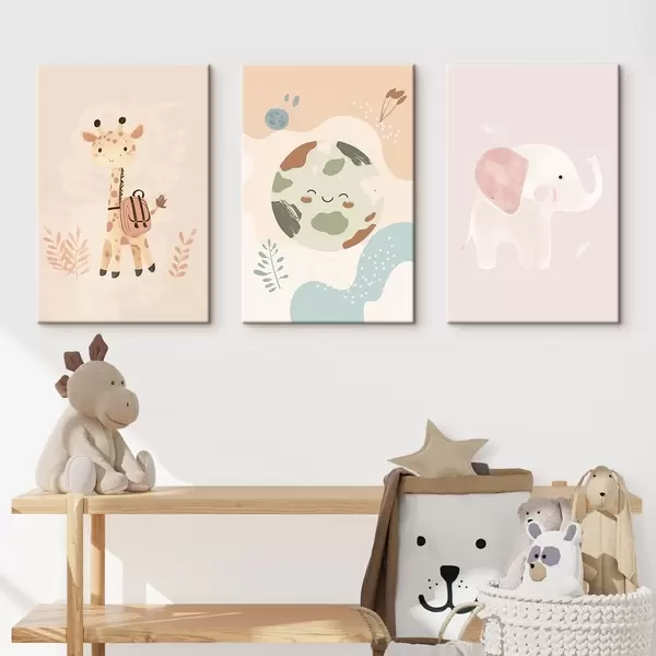 Pictură pe pânză Pământ, girafă și elefant Nr m01135