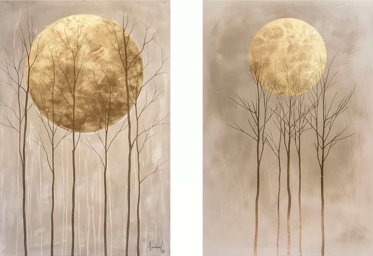 Pictură pe pânză Copaci delicati si cerc Nr m01137