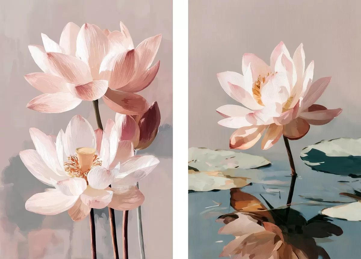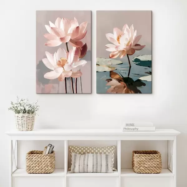 Pictură pe pânză Lotusuri delicate de culoare roz în stilul picturii digitale moderne Nr m01152