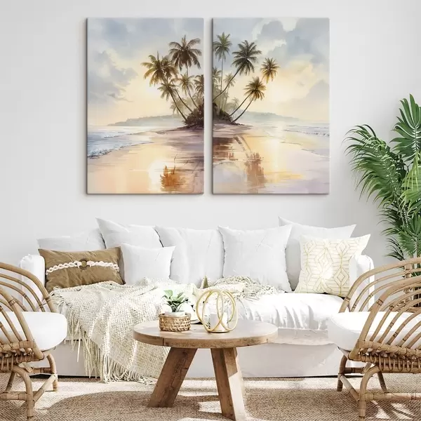 Pictură pe pânză plaja la apusul soarelui pe o insulă în stil acuarelă Nr m01177