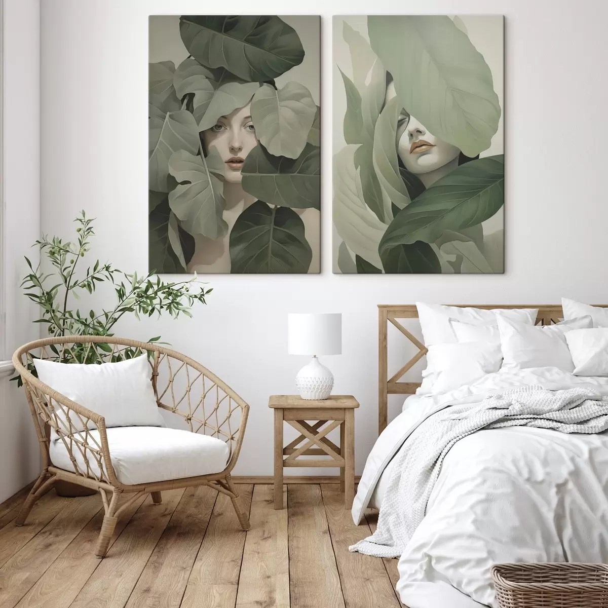 Pictură pe pânză Portretul unei fete în frunziș Nr m01183