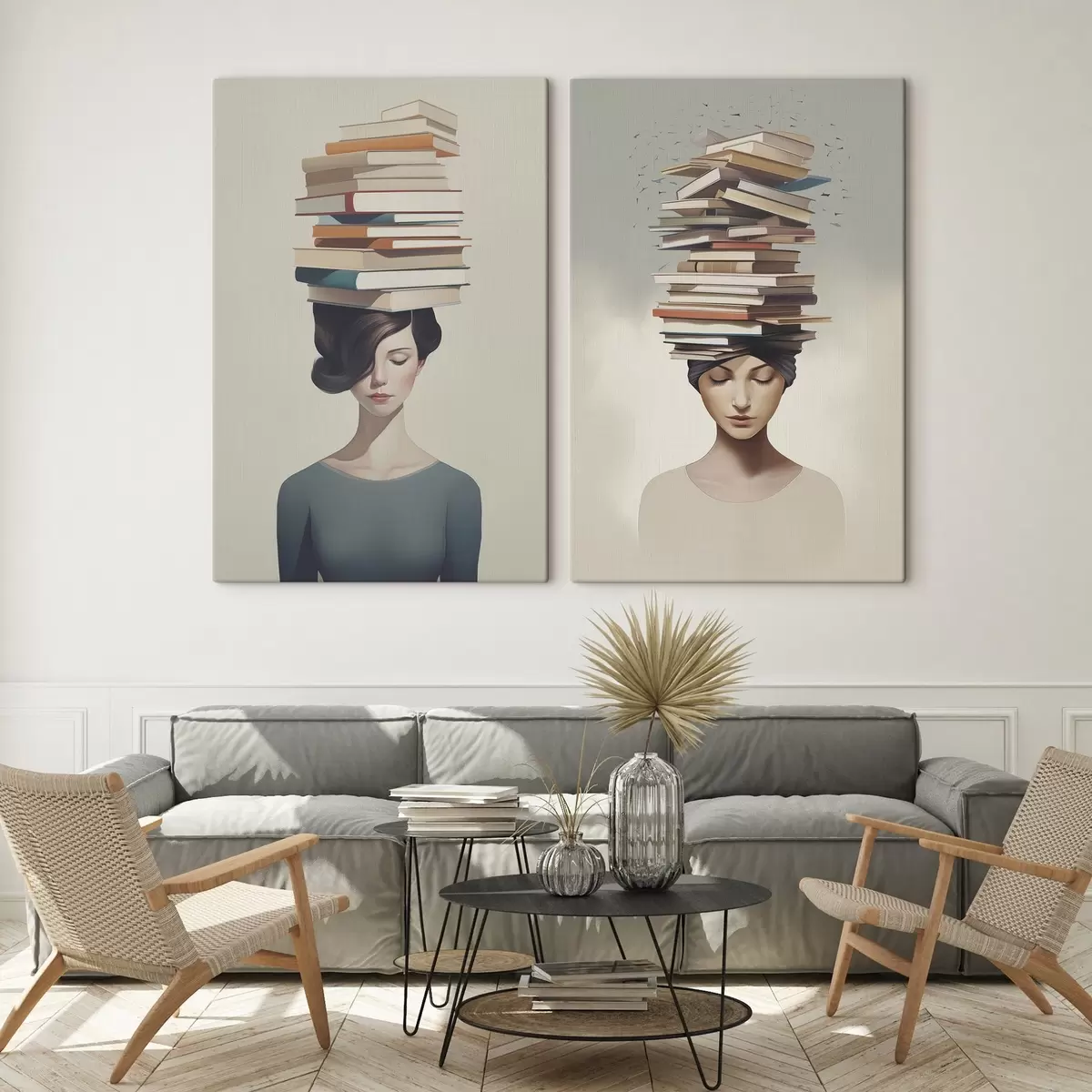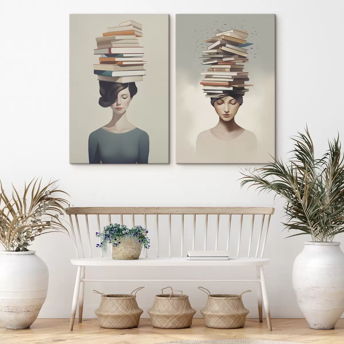 Pictură pe pânză Portretul unei fete cu cărți Nr m01184