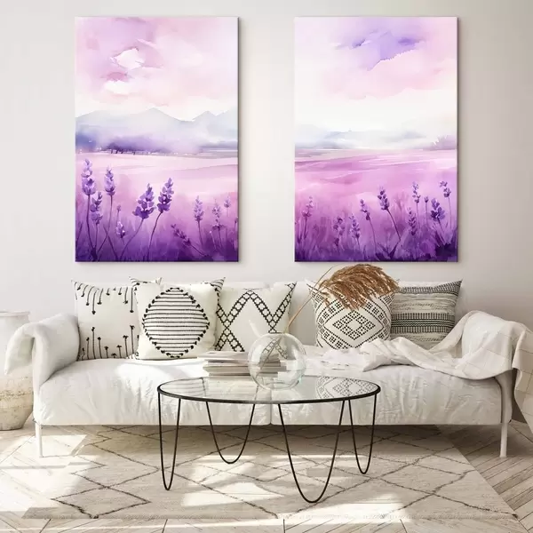 Pictură pe pânză Câmp de lavandă, imitație de acuarelă Nr m01249