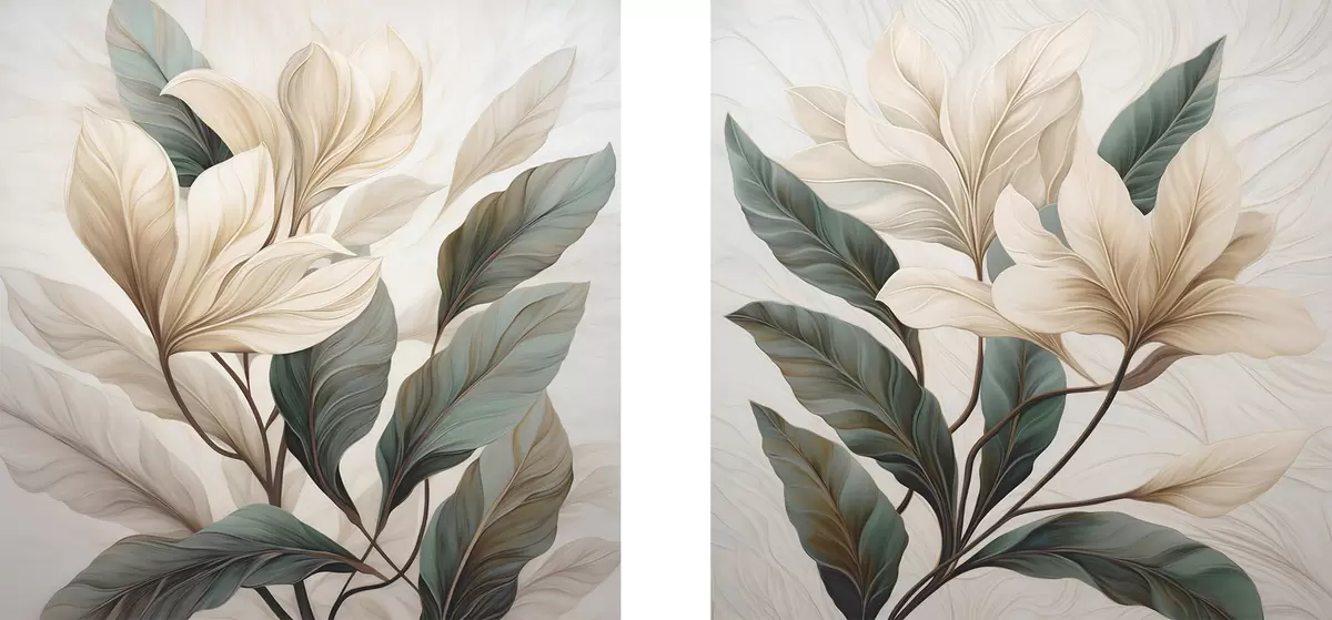 Trei tipuri de materiale sunt disponibile pentru comandă: Economic Canvas - un material dens și durabil pentru imprimarea digitală, identic cu pânza de pictor, suprafață impermeabilă, reproducere realistă a detaliilor, material cu granulație medie. Premium Canvas - textura seamănă cu cea a pânzei unui pictor (fire mici împletite). Reproducere moale, detaliată a imaginii pe o suprafață mată. Eco-Premium - țesătură 100% bumbac de înaltă calitate. Datorită fibrelor naturale de bumbac, materialul este durabil și rezistent la uzură. Reproducere excelentă a culorilor și a detaliilor.