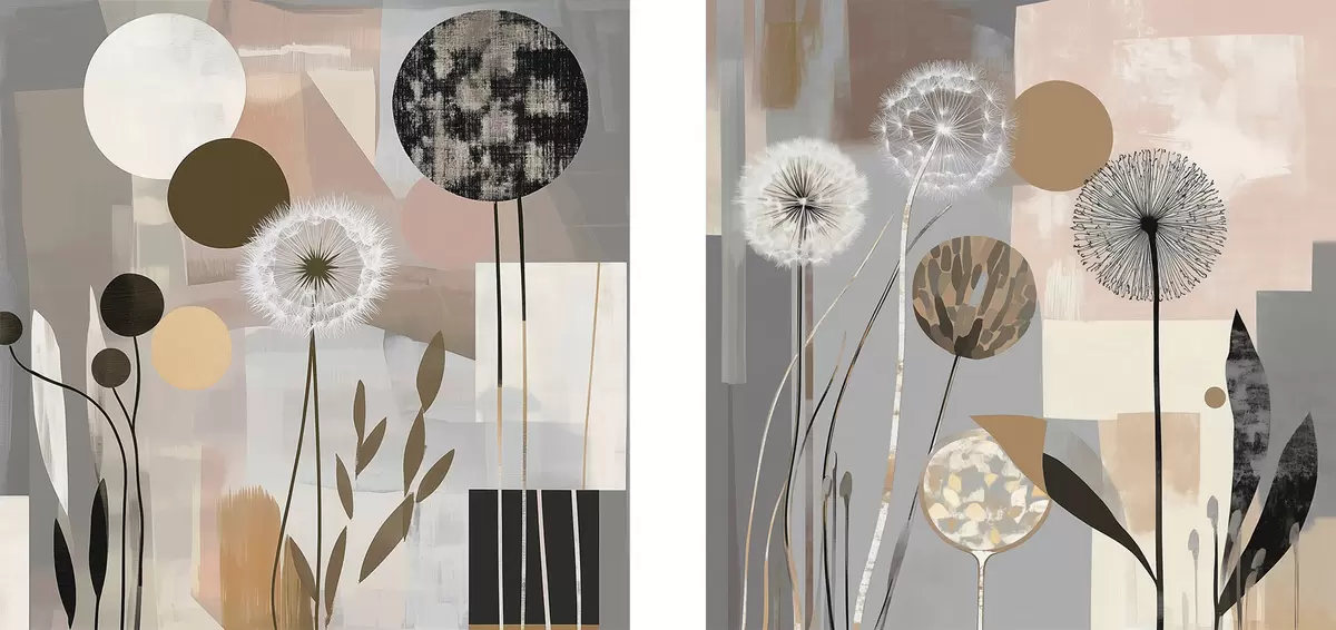 Pictură pe pânză Abstracție cu păpădii și plante Nr m01276