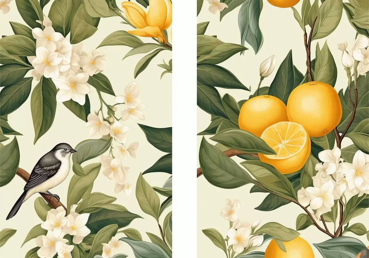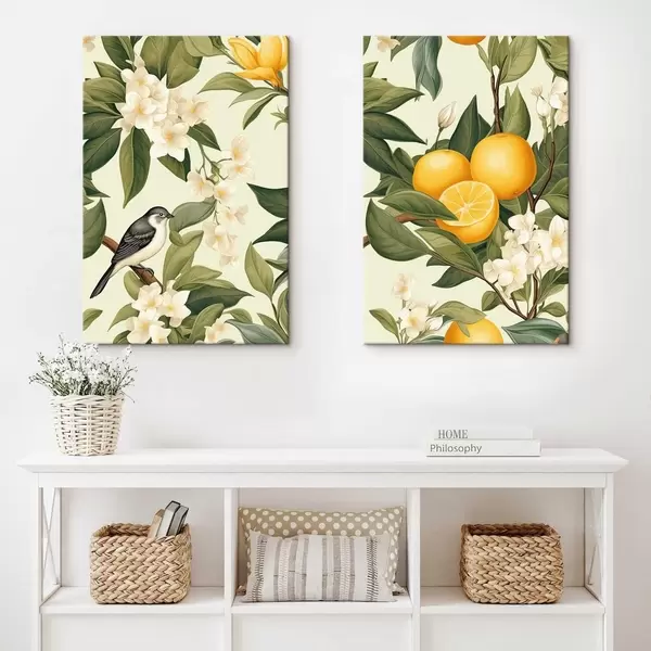 Pictură pe pânză Pasăre pe ramuri de lămâi Nr m01288