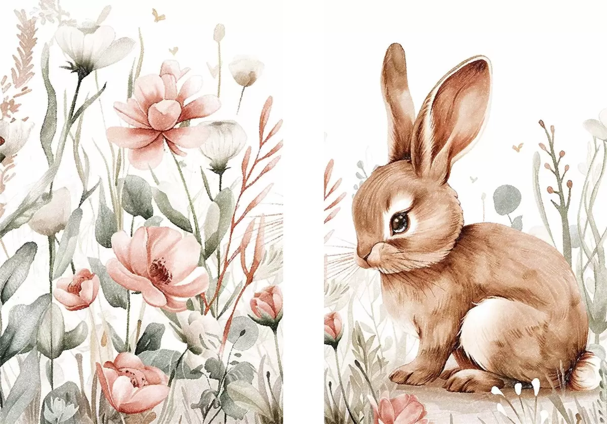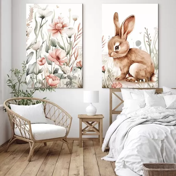 Pictură pe pânză Compoziție cu iepure în flori Nr m01299