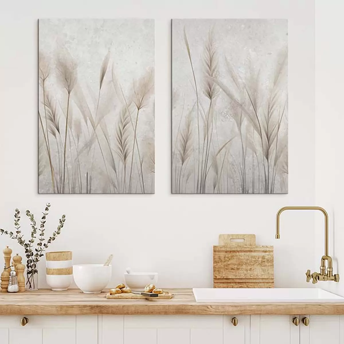 Pictură pe pânză Spiculețe și iarbă pompas pe un fundal îmbătrânit Nr m30024