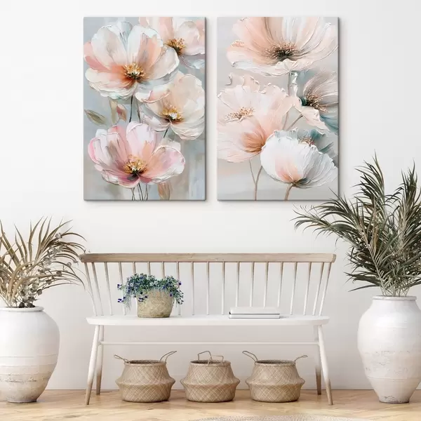 Pictură pe pânză Diptic floral într-o paletă de culori bej-coral, în stilul picturii în ulei Nr m30029