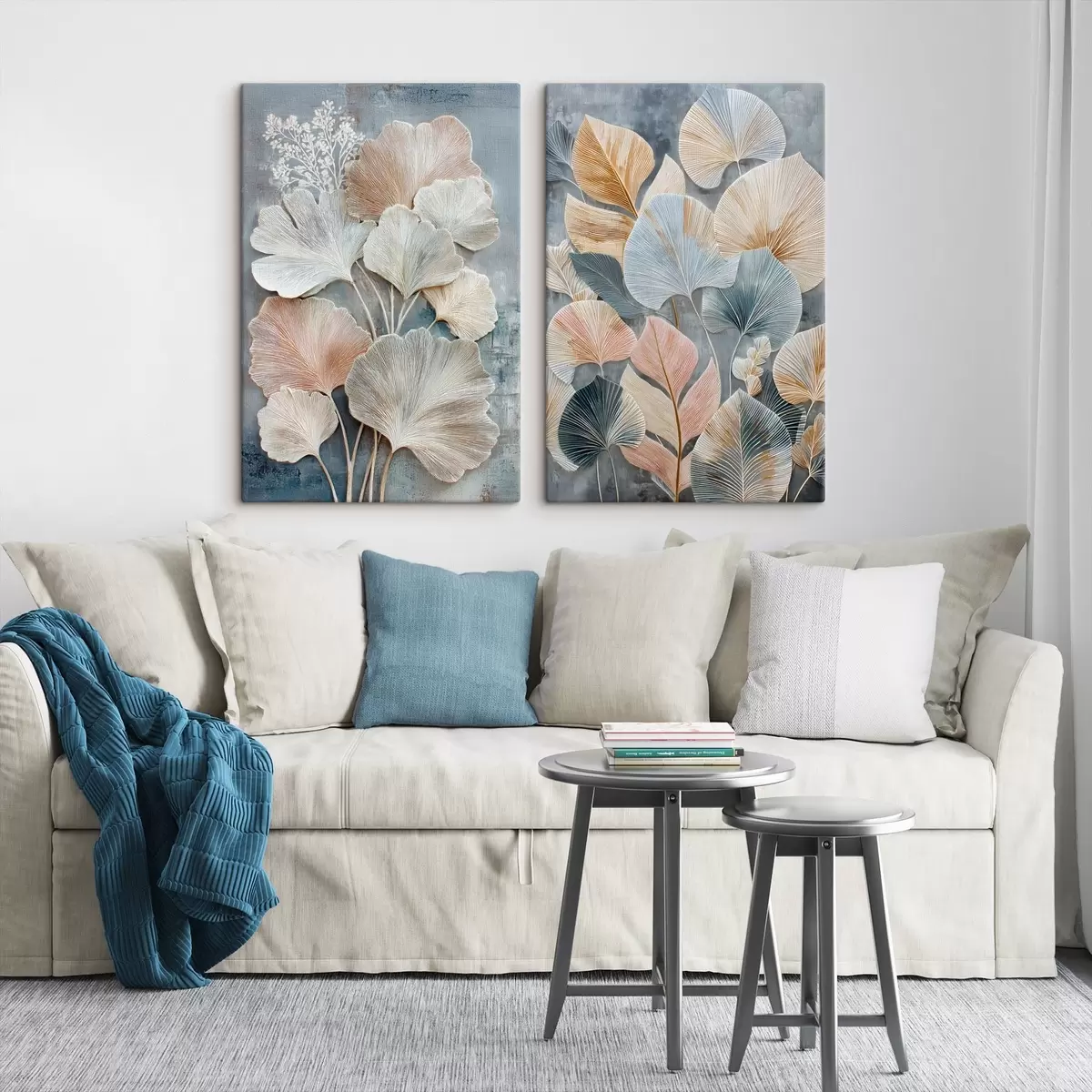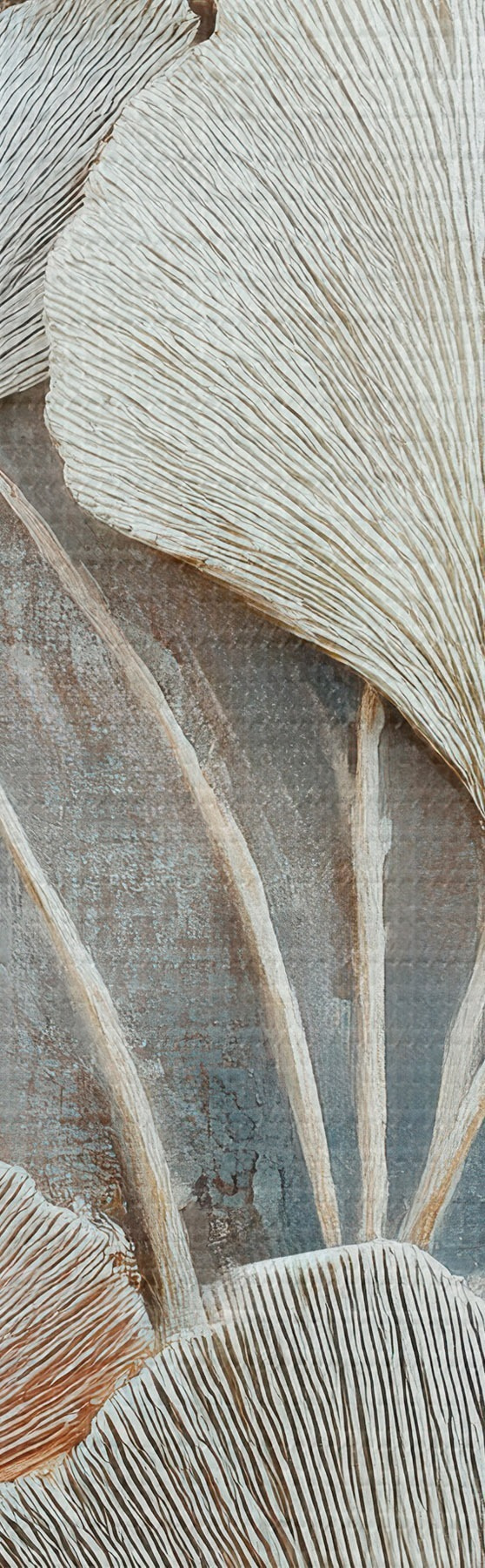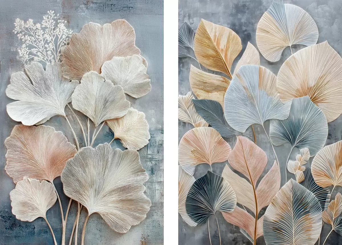 Pictură pe pânză Compoziție abstractă cu frunziș decorativ într-o paletă de culori gri-bej Nr m30030