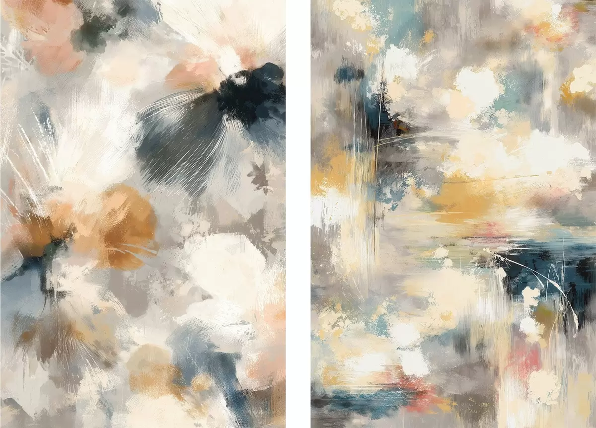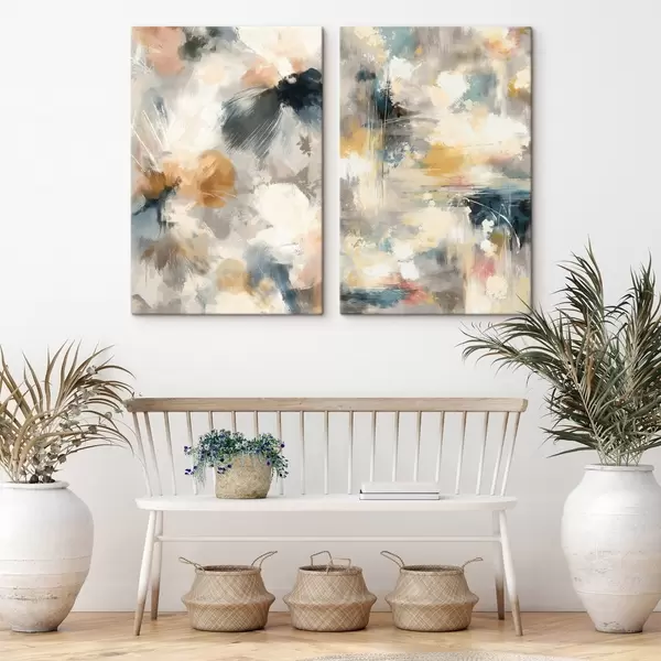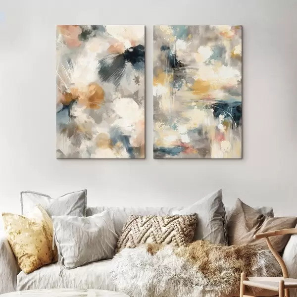 Pictură pe pânză Diptic cu forme florale estompate într-un stil artistic contemporan Nr m30033