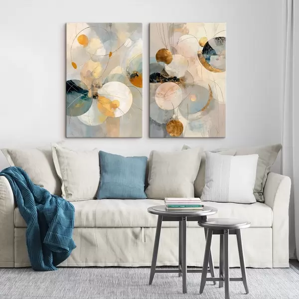 Pictură pe pânză Artă decorativă în tonuri de albastru-crem cu un efect de lumină delicată Nr m30039