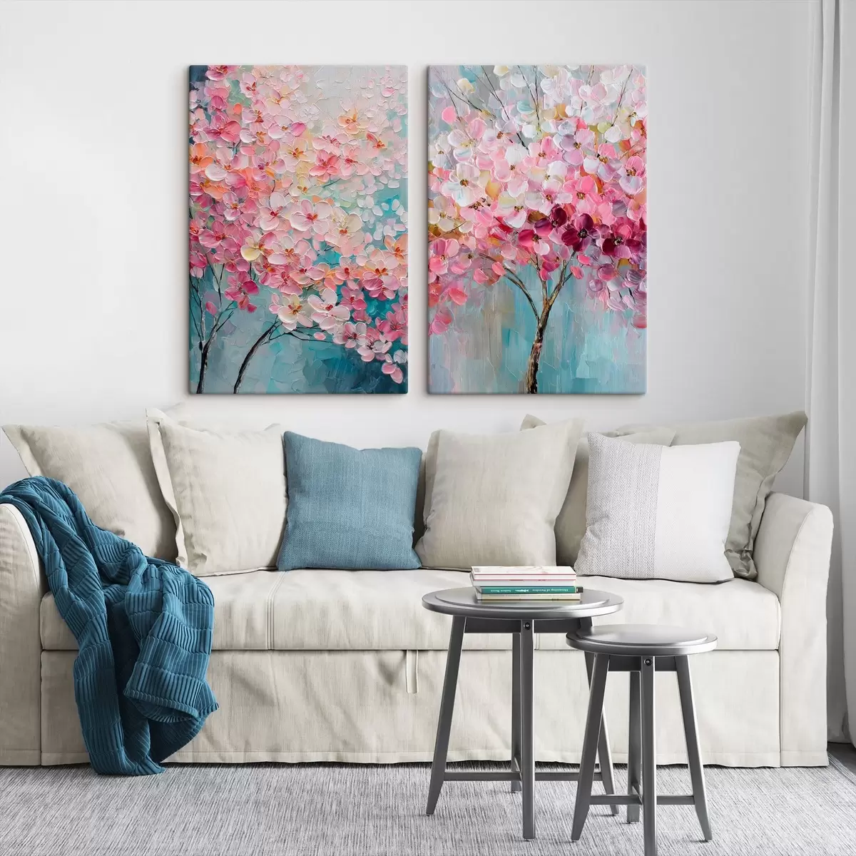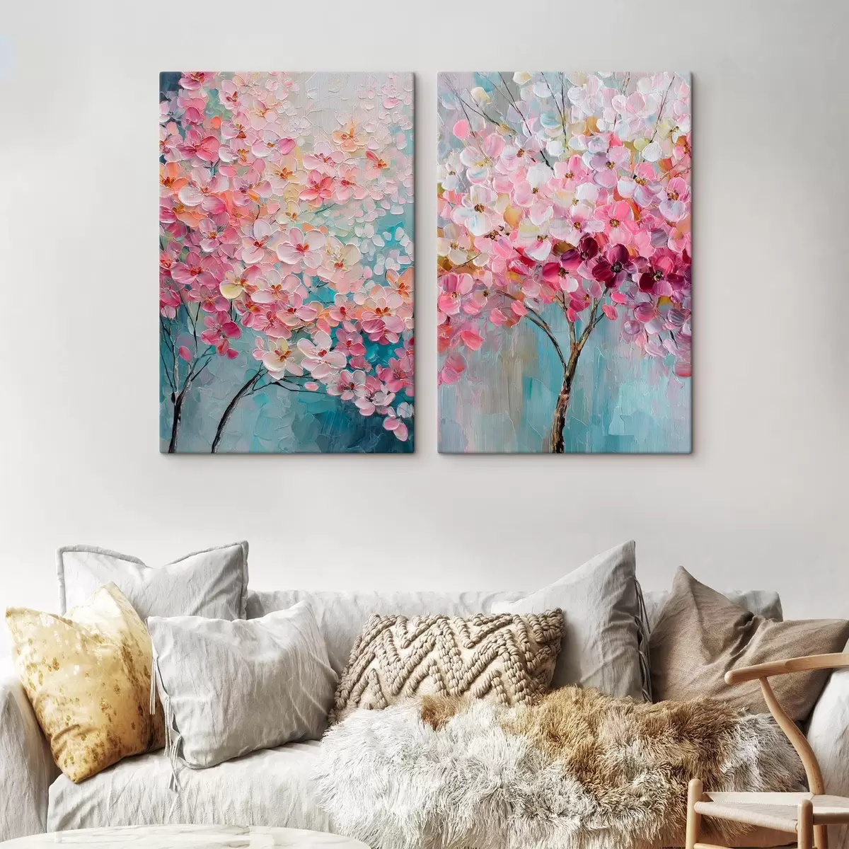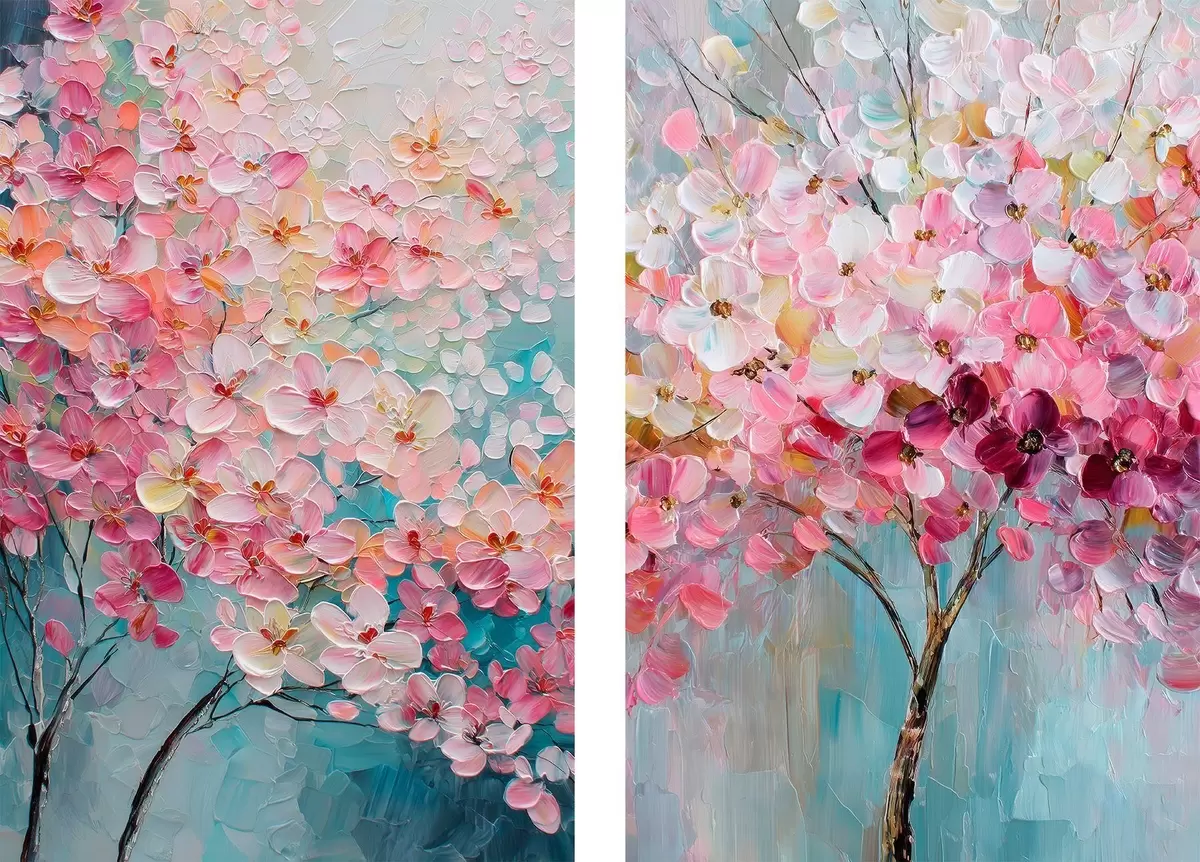 Pictură pe pânză Copac înflorit cu flori roz în stil pictură în ulei Nr m30040