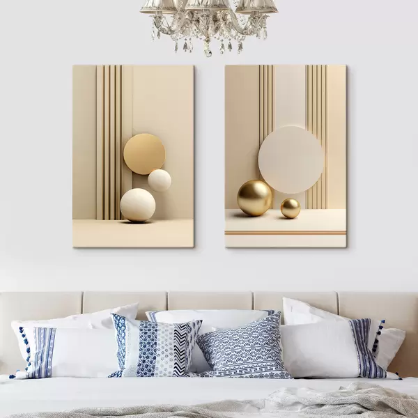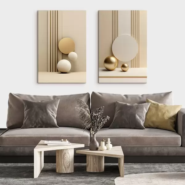 Pictură pe pânză Artă modernă abstractă în nuanțe de bej, cu linii verticale și sfere Nr m30056