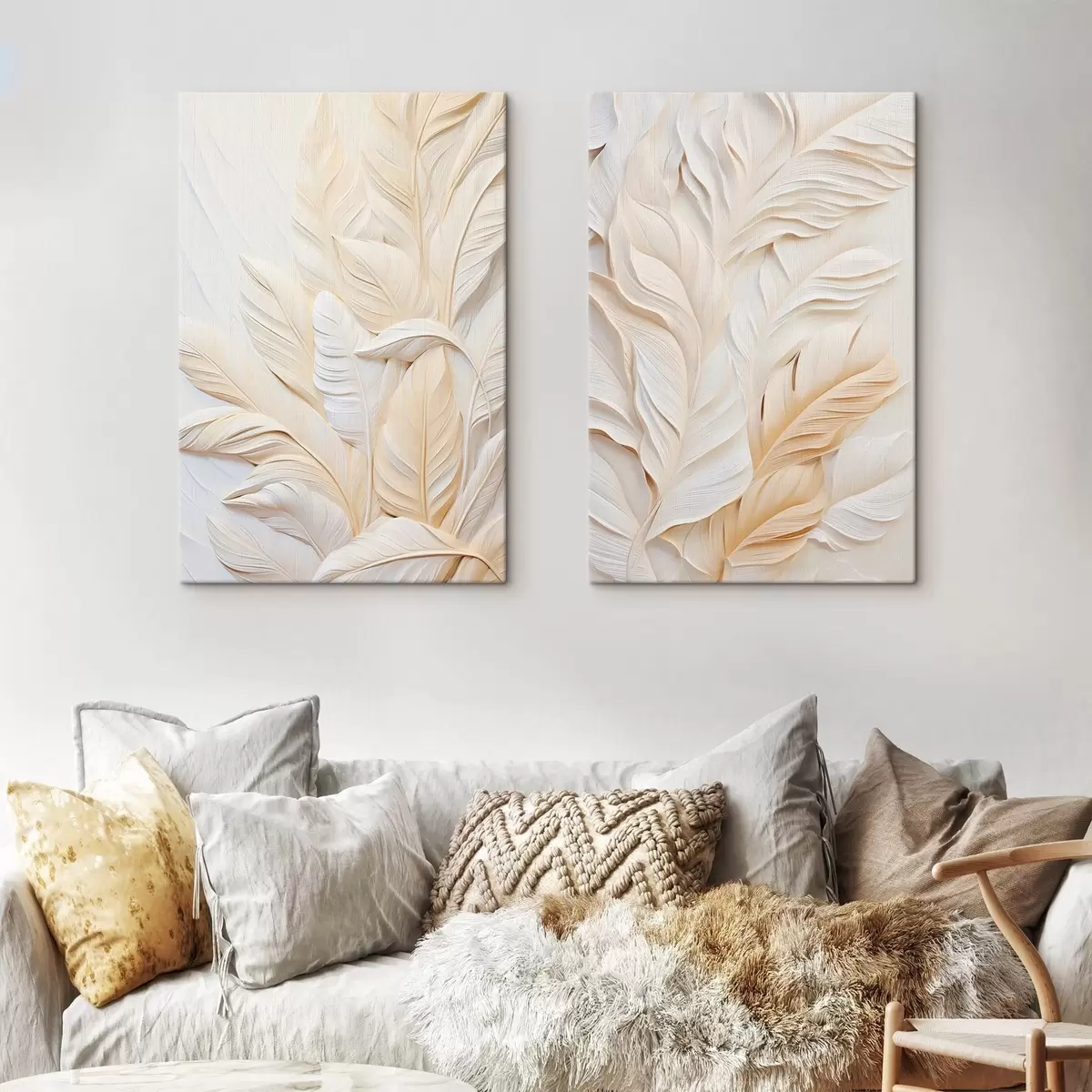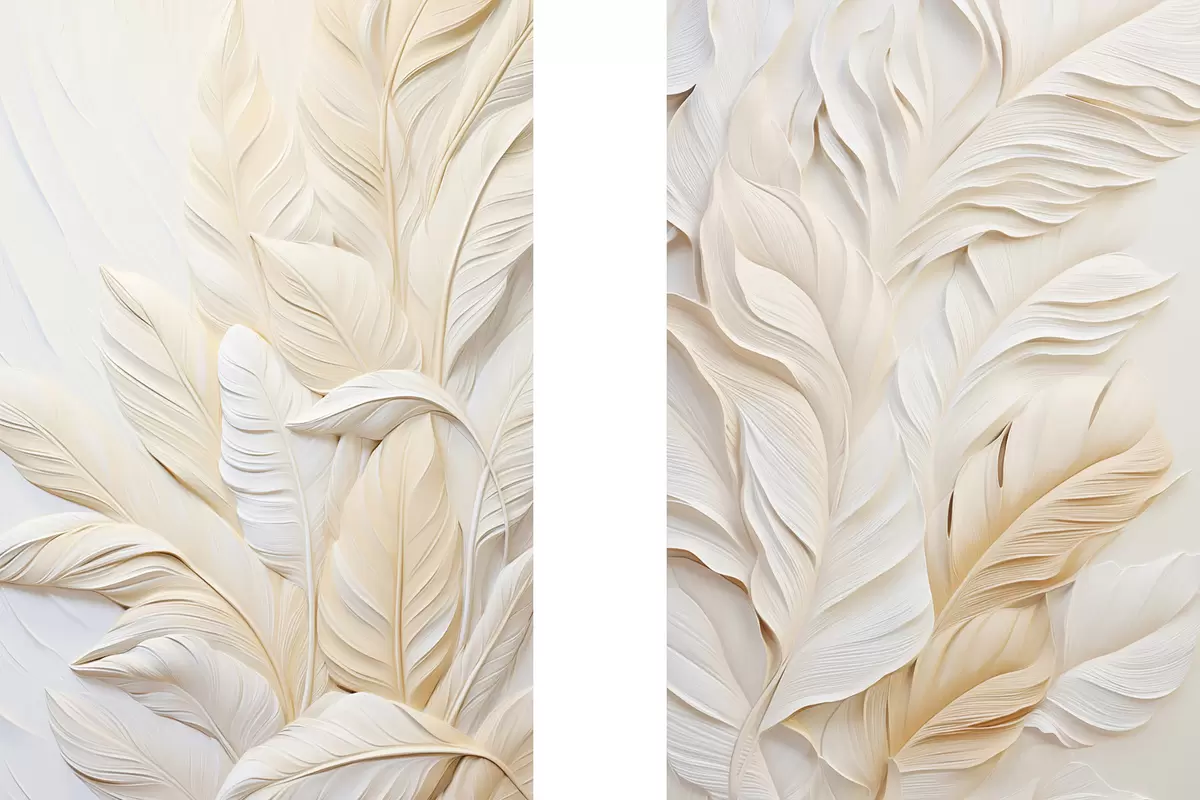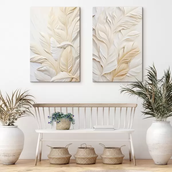 Pictură pe pânză Pene de culoare crem care se suprapun, cu un fundal moale și deschis la culoare Nr m30062