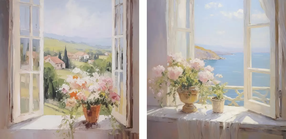 Pictură pe pânză Un buchet într-o vază lângă fereastră Nr m30074