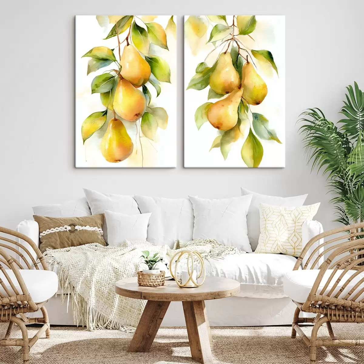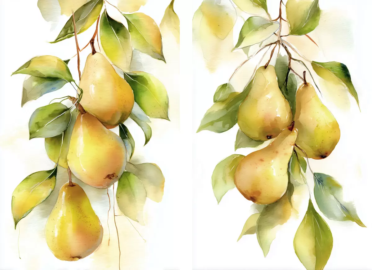 Pictură pe pânză pere galbene suculente în stil acuarelă Nr m30088