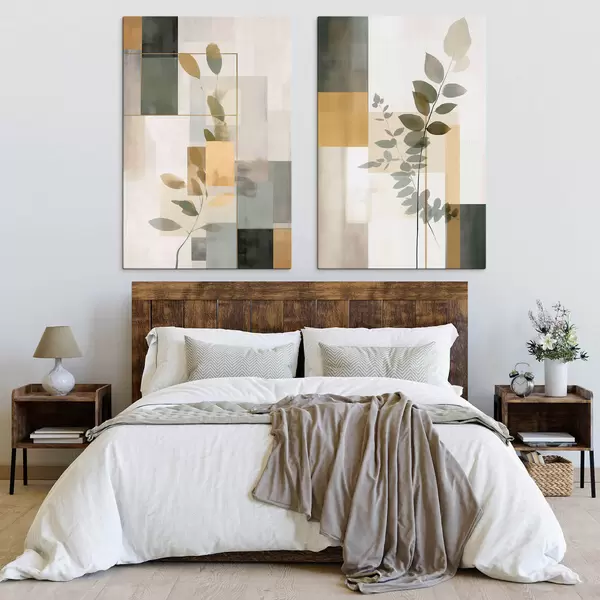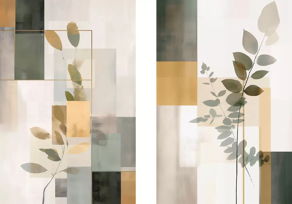 Pictură pe pânză Abstracție geometrică cu ramuri de frunze Nr m30128