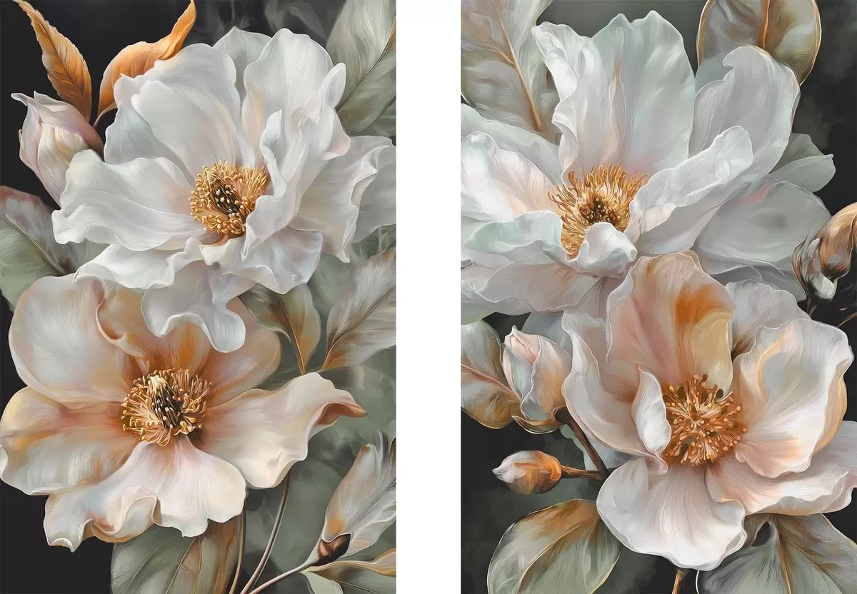 Trei tipuri de materiale sunt disponibile pentru comandă: Economic Canvas - un material dens și durabil pentru imprimarea digitală, identic cu pânza de pictor, suprafață impermeabilă, reproducere realistă a detaliilor, material cu granulație medie. Premium Canvas - textura seamănă cu cea a pânzei unui pictor (fire mici împletite). Reproducere moale, detaliată a imaginii pe o suprafață mată. Eco-Premium - țesătură 100% bumbac de înaltă calitate. Datorită fibrelor naturale de bumbac, materialul este durabil și rezistent la uzură. Reproducere excelentă a culorilor și a detaliilor.