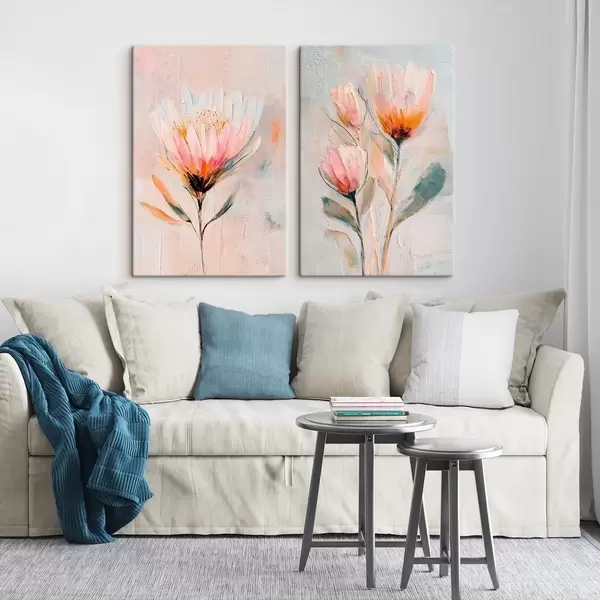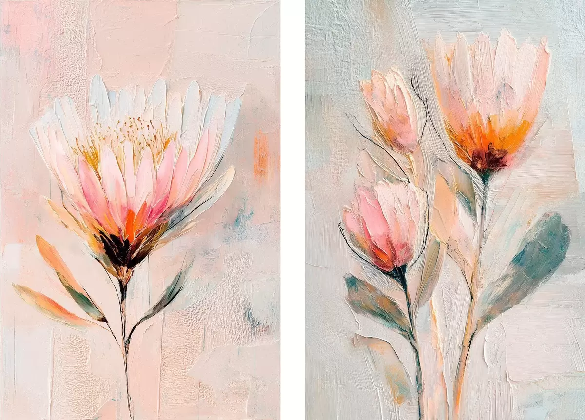 Pictură pe pânză Compoziție florală în nuanțe pastelate, cu tușe volumetrice, în stilul artei contemporane Nr m30140