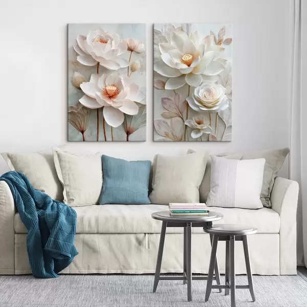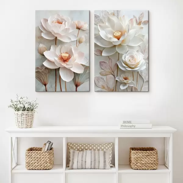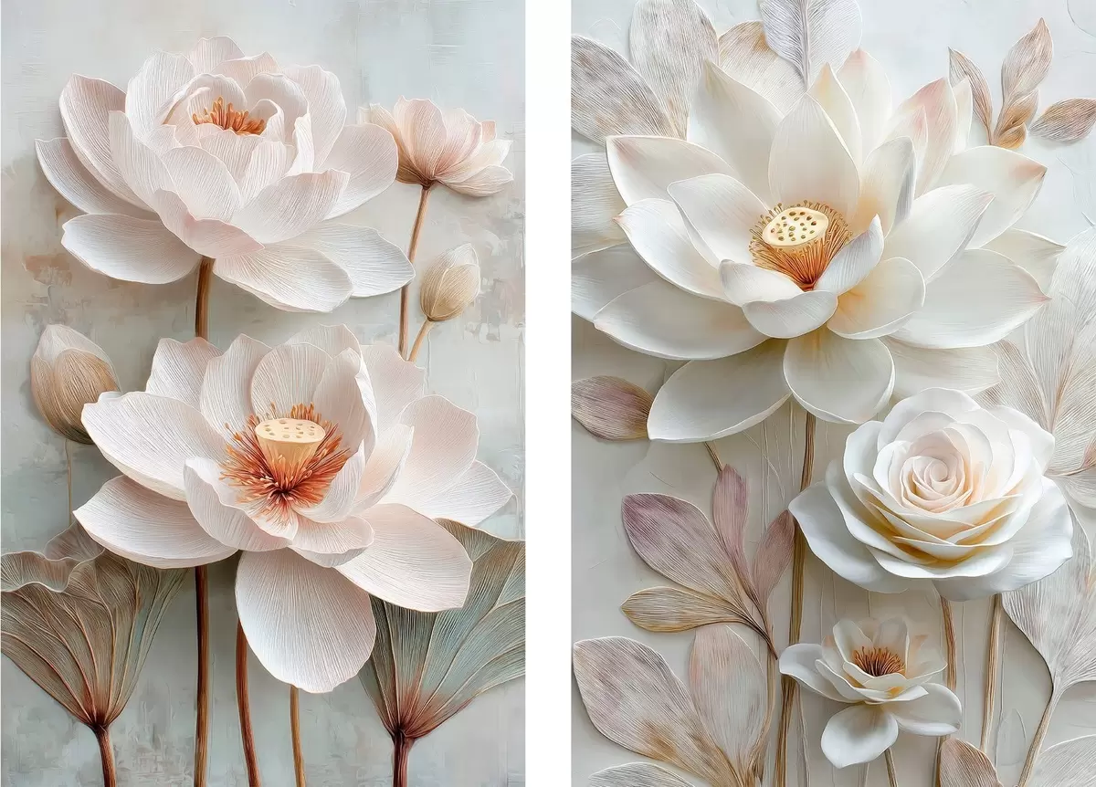 Pictură pe pânză Compoziție florală rafinată, cu petale texturate, în stilul ilustrațiilor 3D Nr m30143