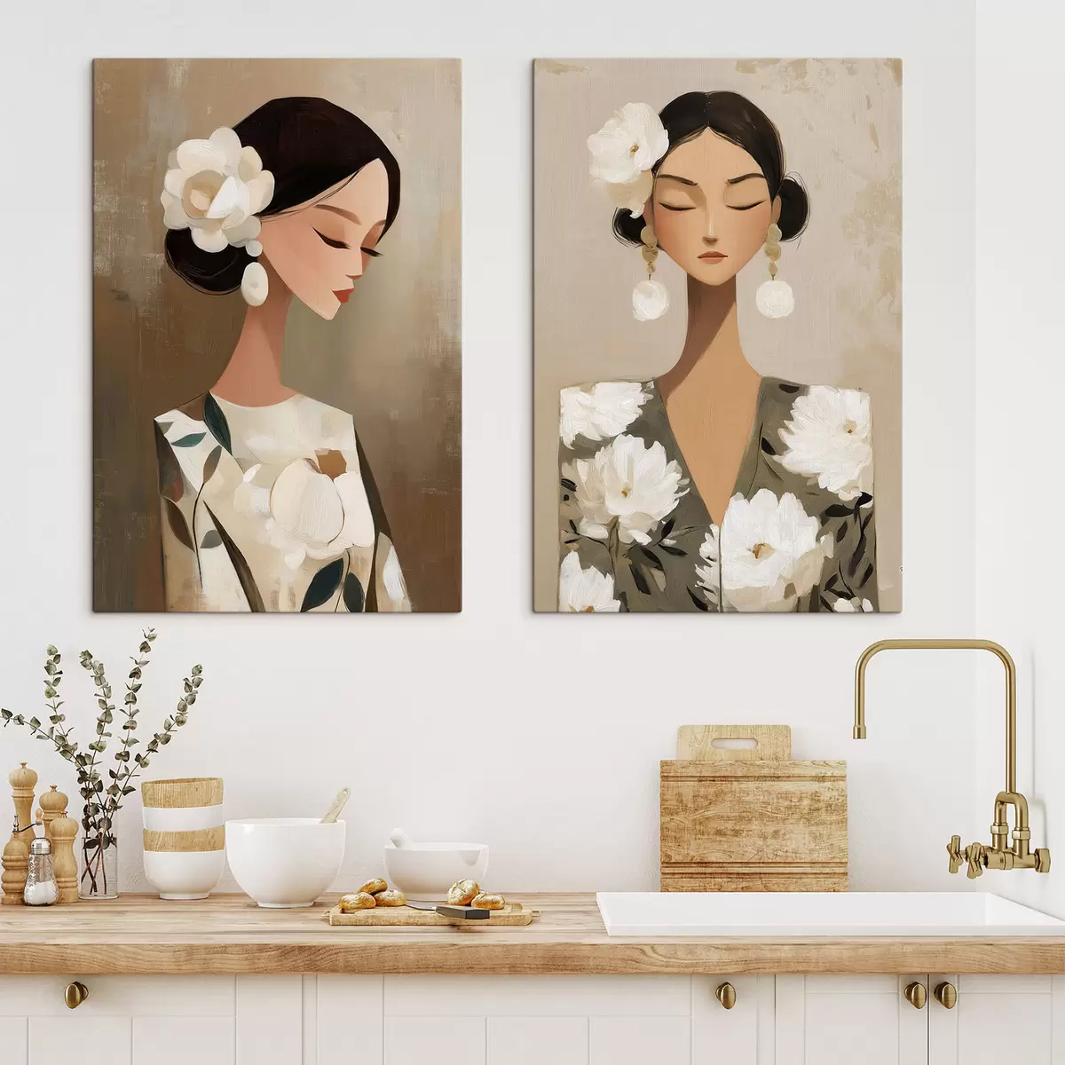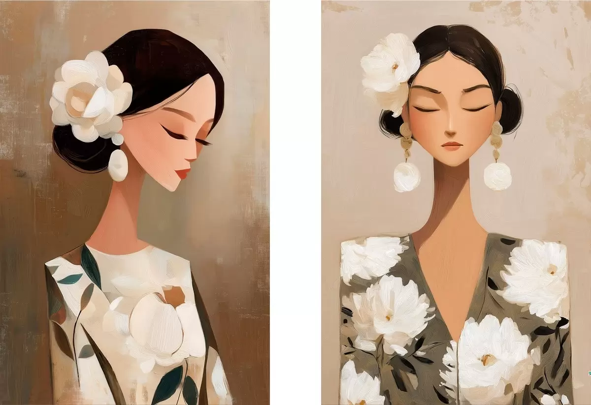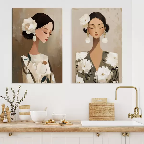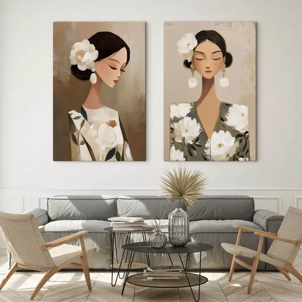 Pictură pe pânză Portret feminin cu o floare albă în păr Nr m30164
