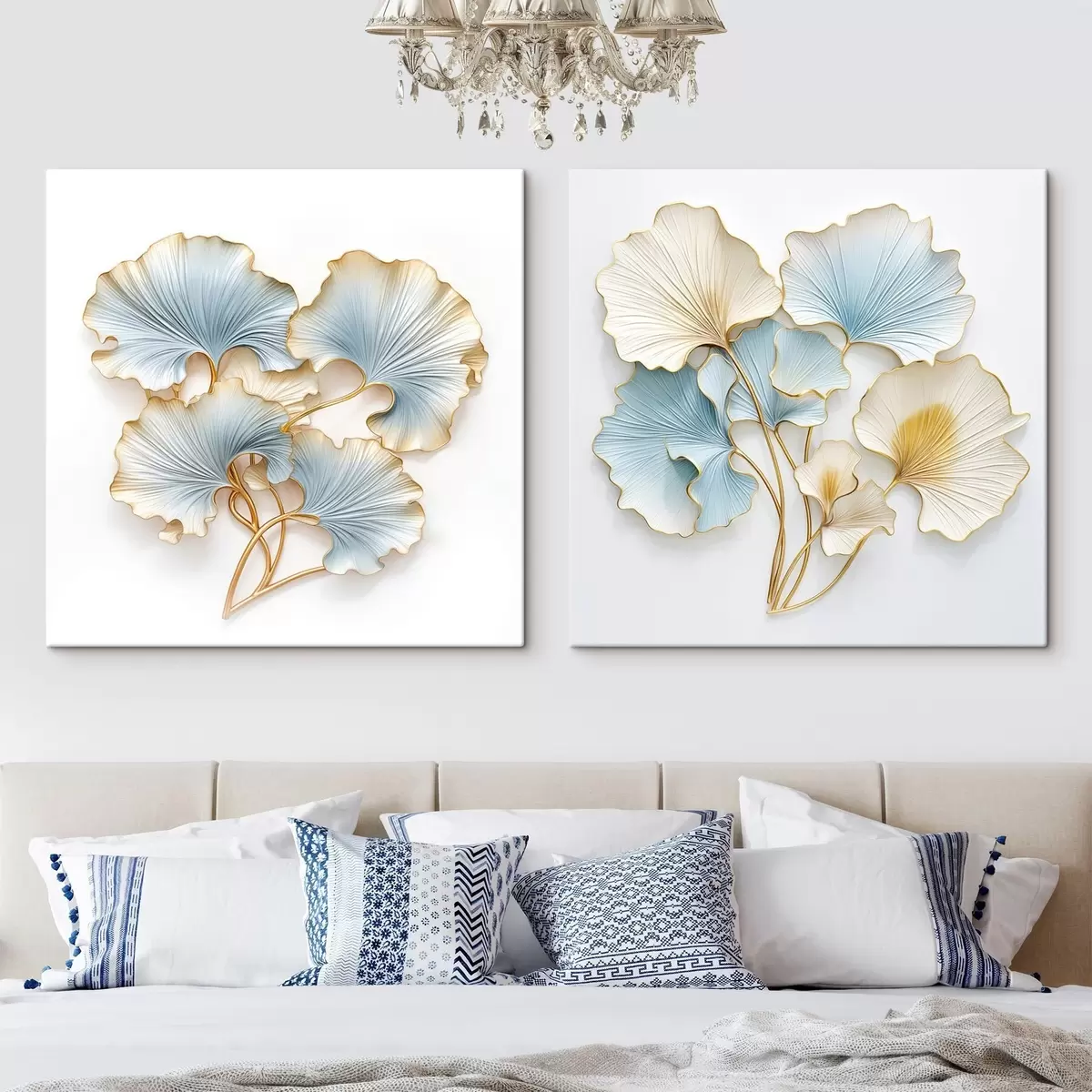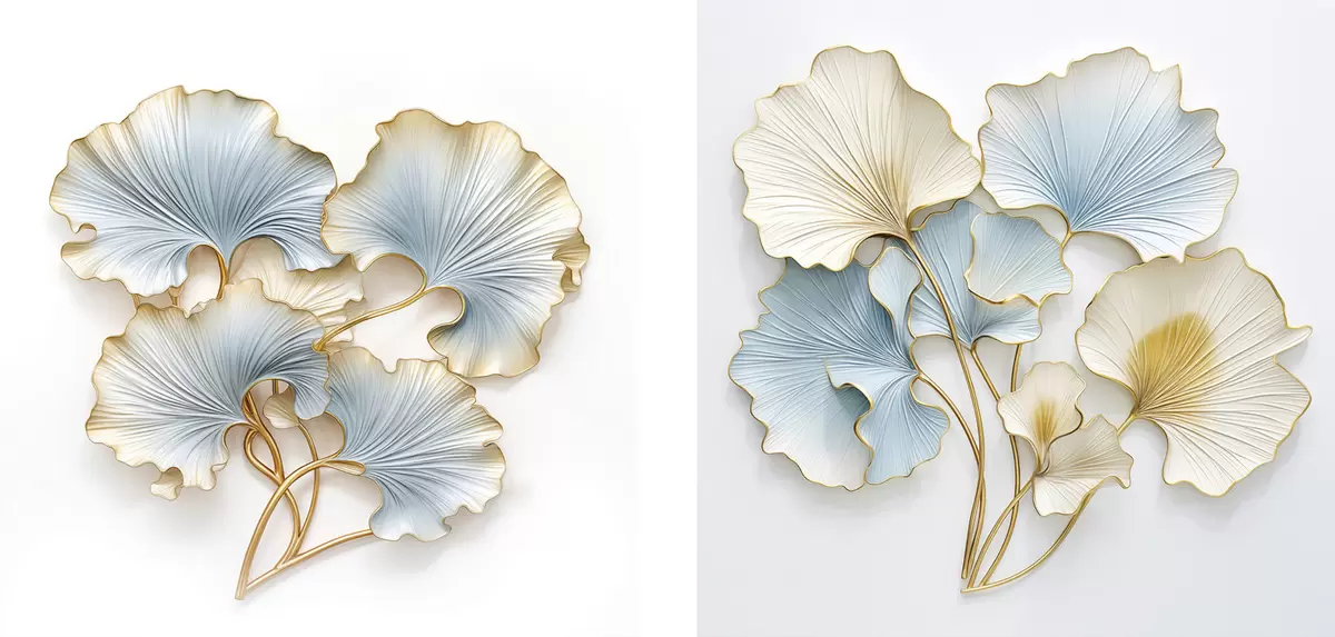 Pictură pe pânză Frunze de ginkgo stilizate, cu accente albastre și galbene Nr m30203