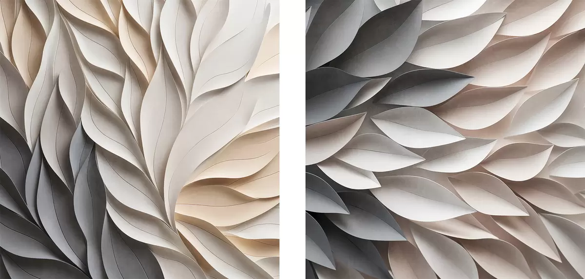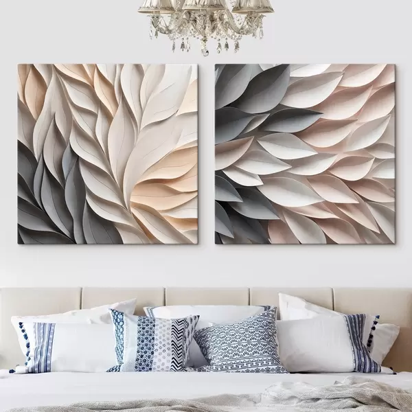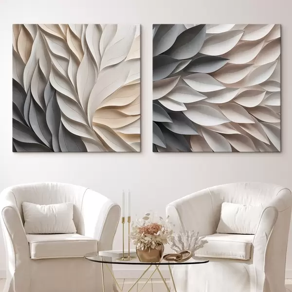 Pictură pe pânză Un model abstract cu frunze suprapuse, cu textură, în nuanțe neutre de bej, crem și gri Nr m30208