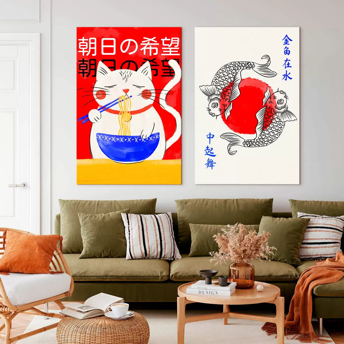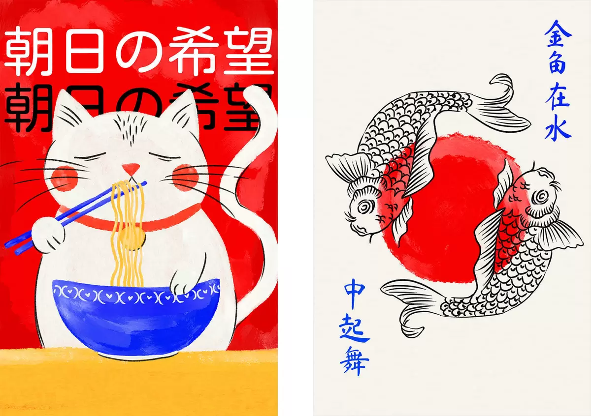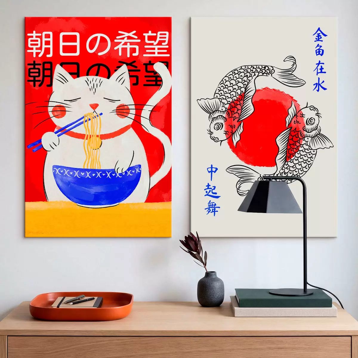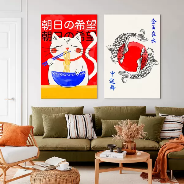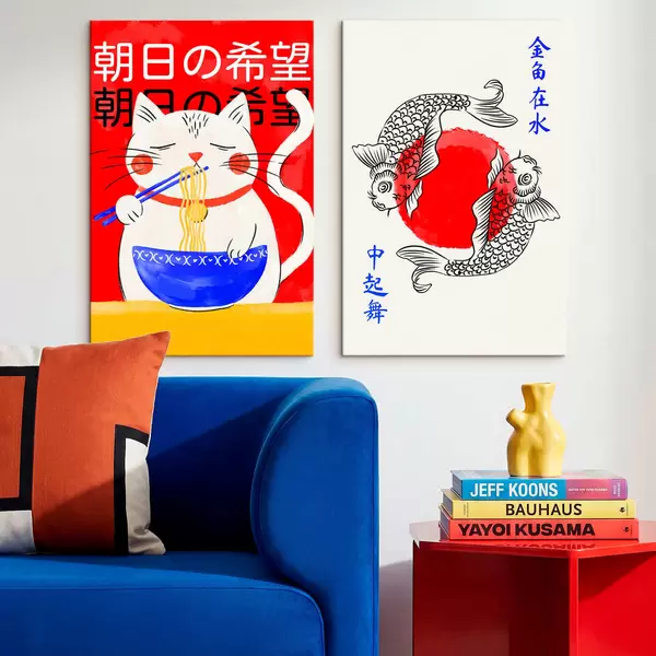 Pictură pe pânză Diptych cu portretul unei femei și pești ornamentali Nr m30234