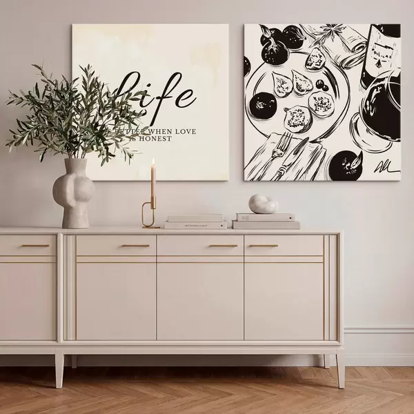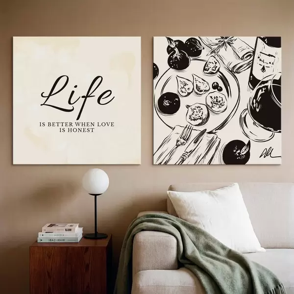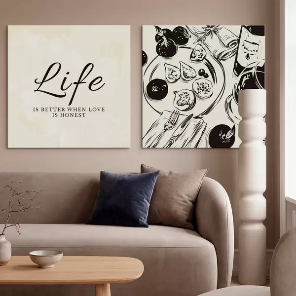 Pictură pe pânză Textul „Life” și un prim-plan al unei flori albe Nr m30238