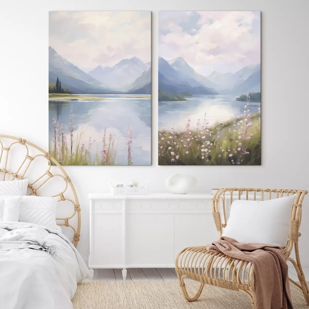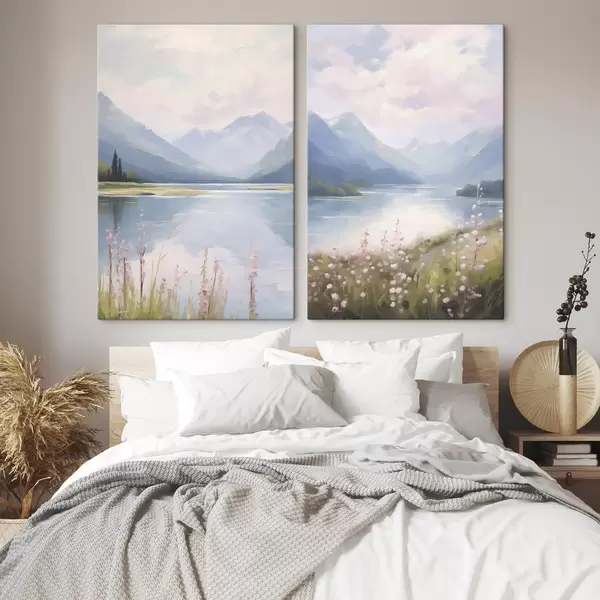 Pictură pe pânză Lac lângă munți imitație de pictură Nr m30248